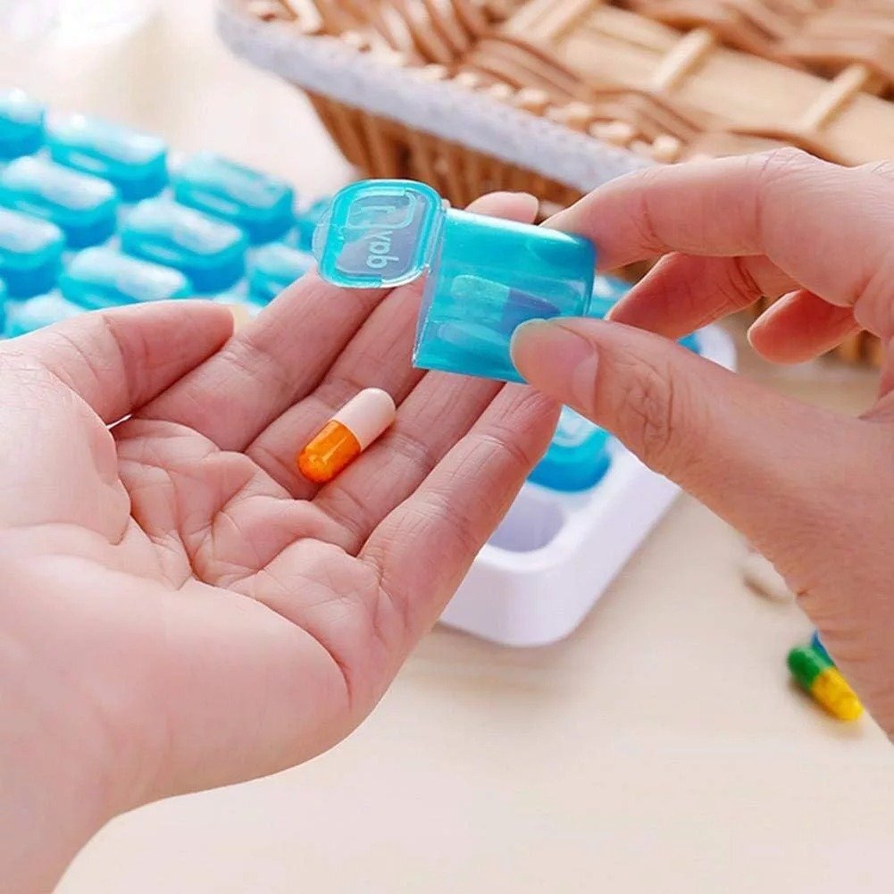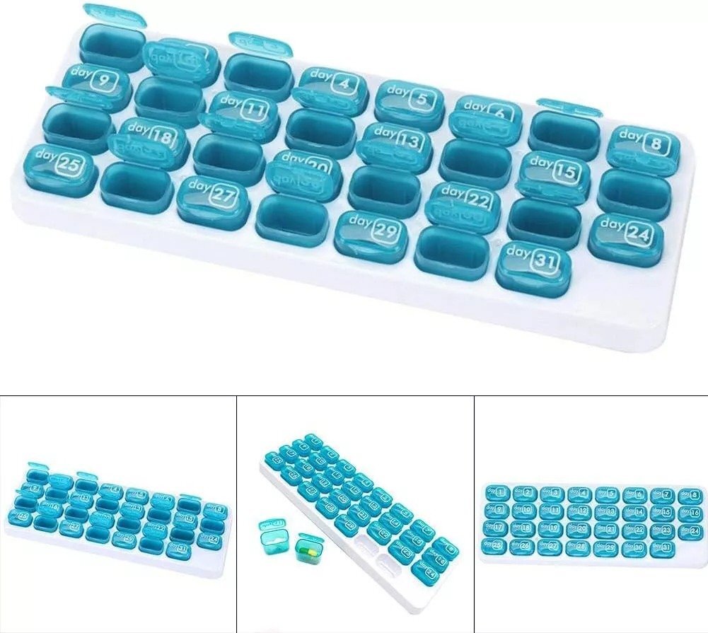 Ez a praktikus gyógyszeradagoló segít rendszerezni a gyógyszereket és vitaminokat egy teljes hónapra.