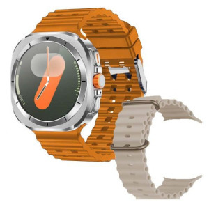 A25 ULTRA okosóra ezüst dial - bézs, narancssárga szilikon szíjjal