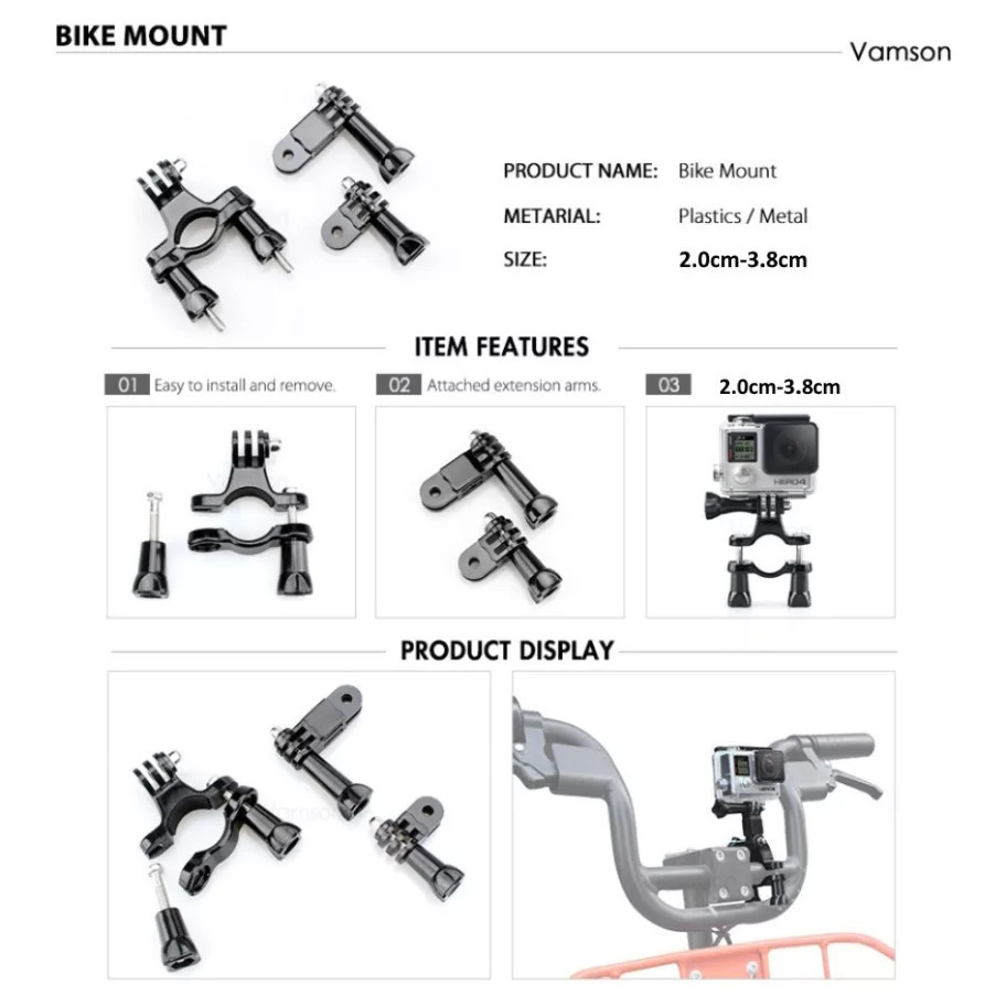 A tartó alkalmazkodik a különböző kormánycső méretekhez. Így könnyen csatlakoztatható a bicikli vagy motorkerékpár kormányára vagy vázára. Fontos rá odafigyelni, hogy a tartó szorosan és stabilan legyen rögzítve. Így felvétel közben nem mozdul el, és megóvja a kamerát az esetleges sérülésektől.