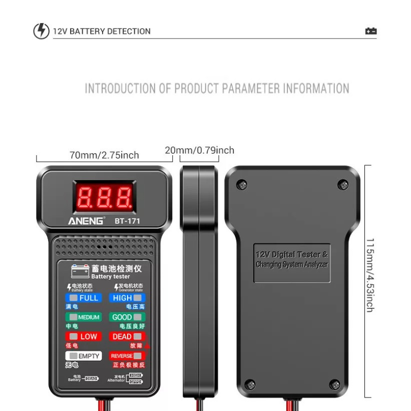 Az ANENG BT-171 Autós Akkumulátor és Generátor Teszter egy praktikus és megbízható eszköz, ami az autós akkumulátorok és generátorok állapotának gyors és pontos ellenőrzésére szolgál.