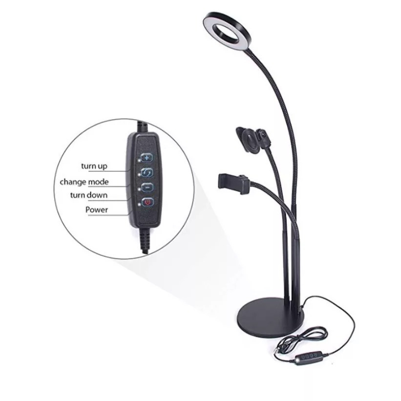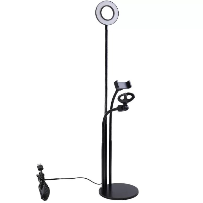 A LED Gyűrűs Flexibilis Asztali Telefontartó és Mikrofonállvány nagy segítséget nyújt a gyenge fényviszonyú, sötét vagy fényhiányos környezetekben is. Emiatt, valamint stabil és rugalmas tartószerkezete miatt egy ideális választás YouTube, Facebook élő közvetítésekhez, továbbá minőségi videók, selfiek készítésére.