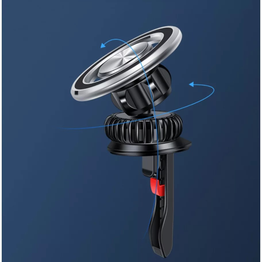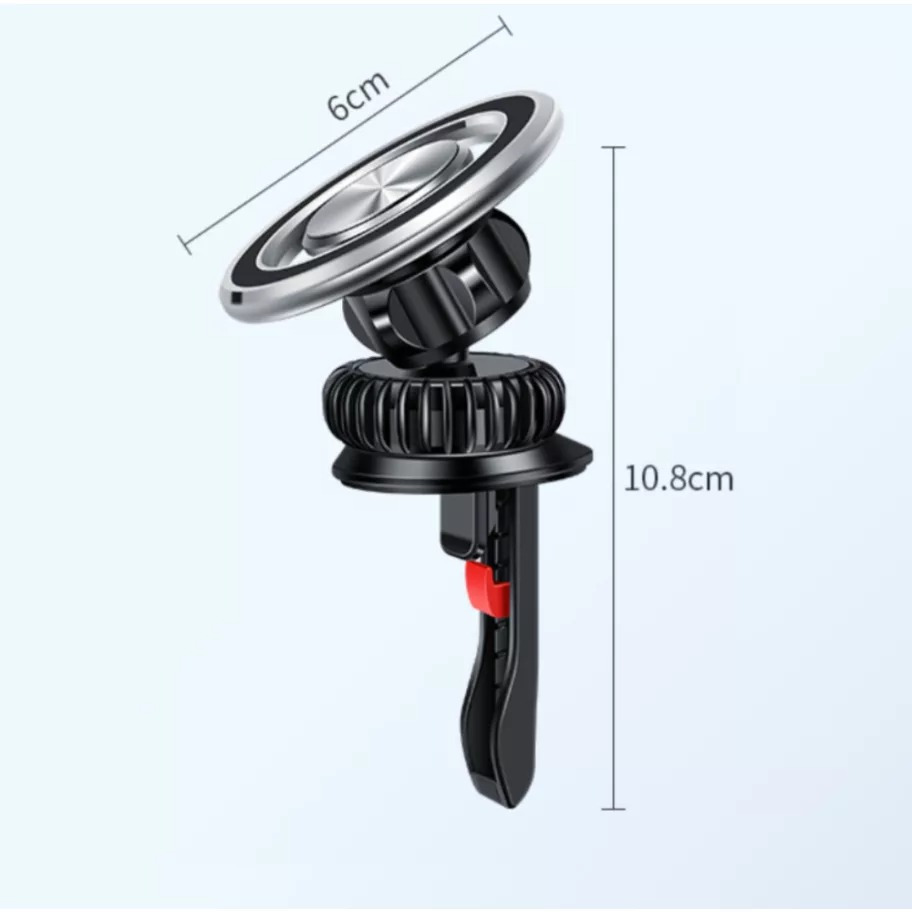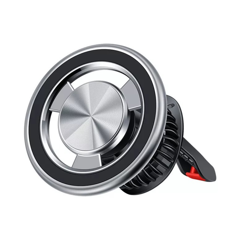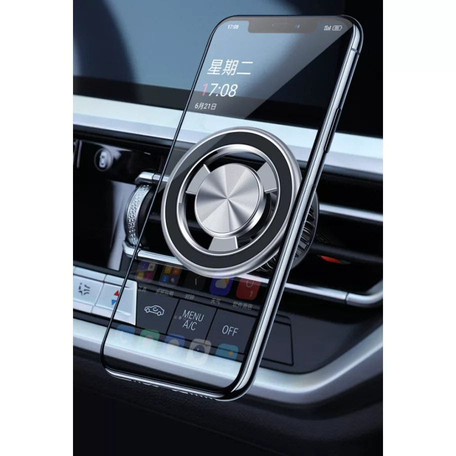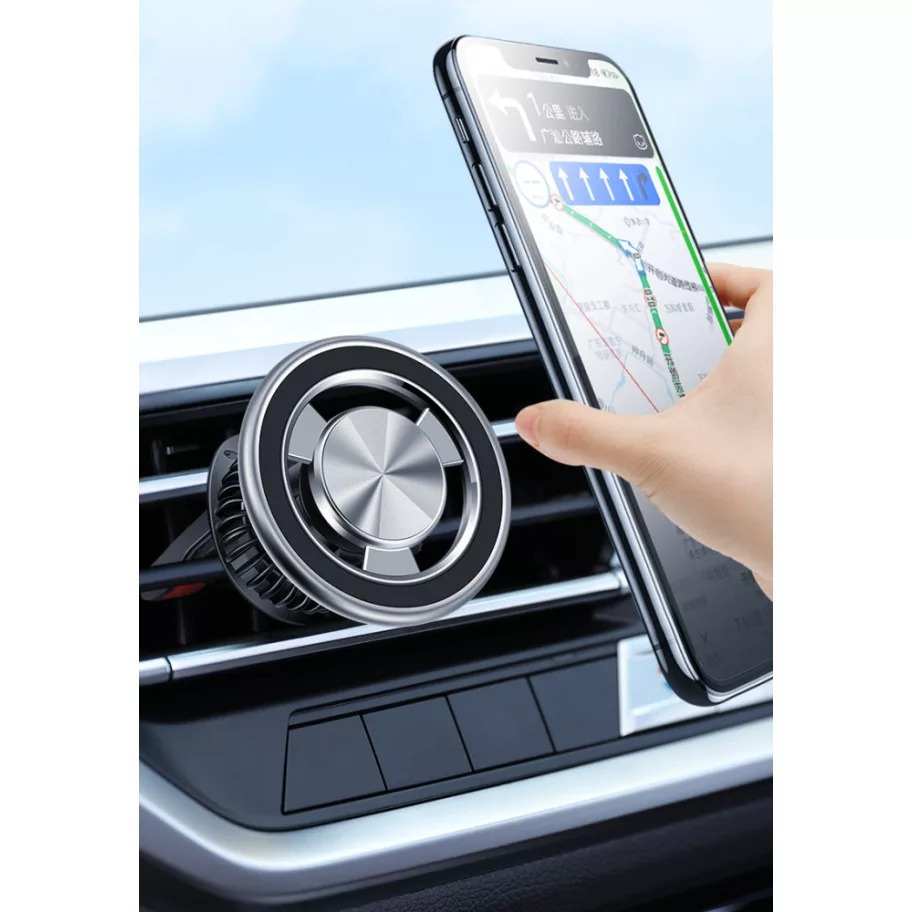 Beépített, erős mágnese biztonságosan tartja az okostelefont. A csomagban található egy telefon hátuljára vagy a telefontokba helyezhető fémlap is, ami erősen rátapad a mágneses felületre.