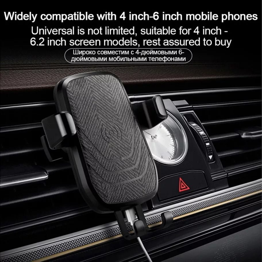 Vezeték nélküli autós gyorstöltő és telefontartó.