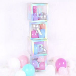 Baby ballon box, dekorációs díszdoboz - irizáló ezüst