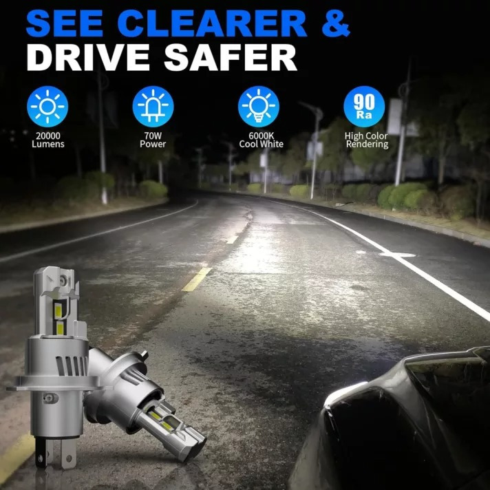 A BEAMFLY H4 LED izzók akár 200%-kal fényesebbek a hagyományos halogén égőknél. A 6000K színhőmérsékletű, tiszta fehér fény kristálytiszta látóteret biztosít, így éjszakai vezetésnél messzebbre és élesebben látsz.
