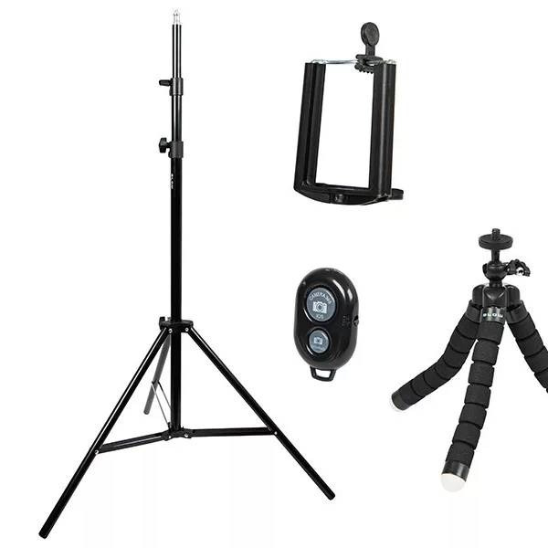 2 az 1-ben szett: egy 210 cm-es állítható állvány és egy hajlítható mini tripod