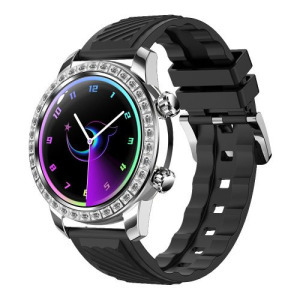 ChronoLux okosóra ezüst - fekete szilikon és bőr szíjjal