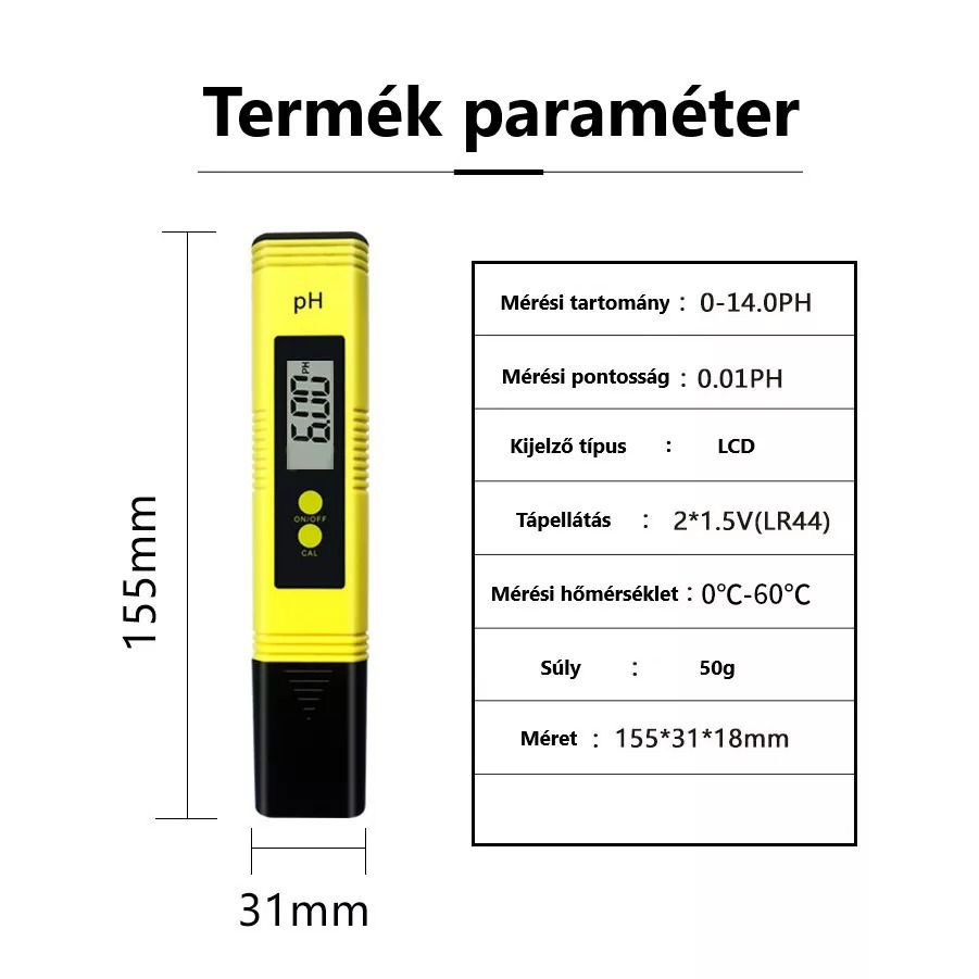 * Stílusos kialakítás: Sárga színe feltűnő és egyszerűen észrevehető. Modern megjelenést biztosít a PH mérőnek.