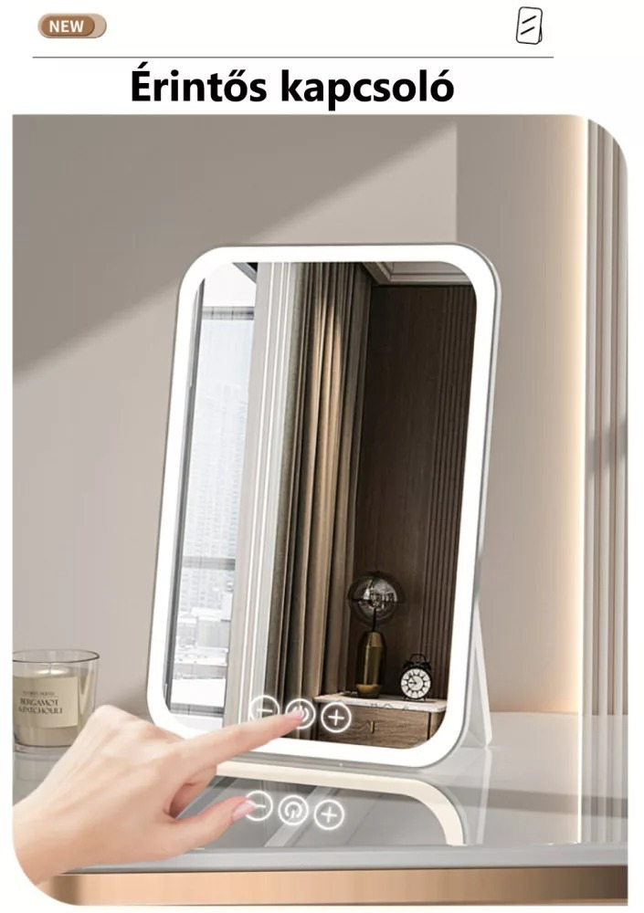 A Professzionális LED-es Kozmetikai Tükör egy érintő szenzoros, modern dizájnú kozmetikai tükör. Fedezze fel saját szépségét, ezzel a modern és funkcionális eszközzel. Ez a sminktükör kifejezetten arra lett tervezve, hogy segítse Önt a tökéletes smink elkészítésében, mindezt egyszerűen, az optimális fényviszonyok kialakításával. Ékes díszévé válhat a fésülködő asztalnak.
