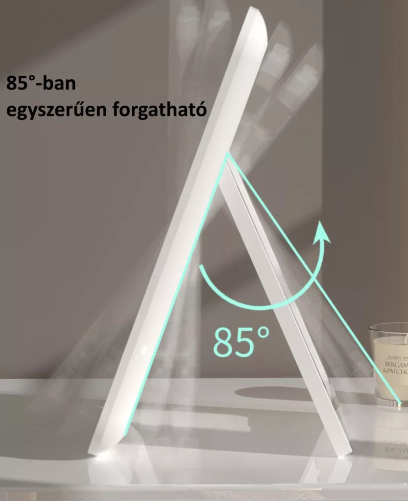 * Kitámasztható Láb: A tükör a kihajtható lábával mindenhol megállja a helyét. Stabilan tartja a tükröt bármilyen sík felületen, legyen szó egy sminkasztalról vagy bármilyen hagyományos asztalról.