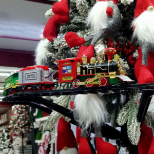 - Karácsonyfára szerelhető világítós kisvasút, télapóval.
