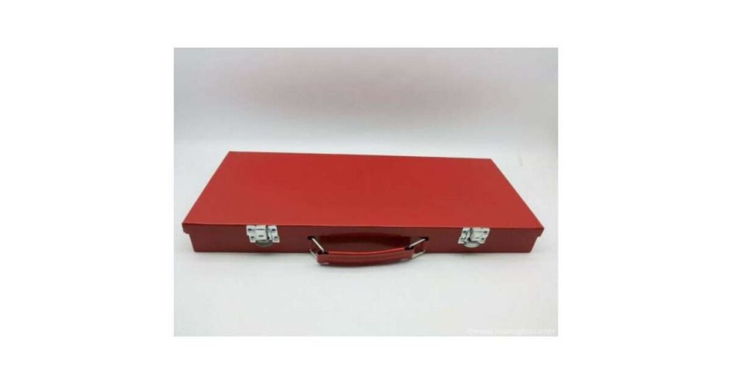 Praktikus tárolás: A fémtok védi a szerszámokat és megkönnyíti a szállítást.
