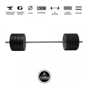 Univerzális, több készlet készíthető. A tárcsákat le-fel tudja helyezni a súlyzó rúdon.