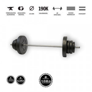 Univerzális, több készlet készíthető. A tárcsákat le-fel tudja helyezni a súlyzó rúdon.