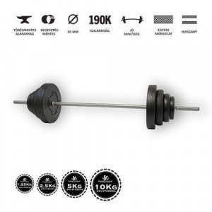 Univerzális, több készlet készíthető. A tárcsákat le-fel tudja helyezni a súlyzó rúdon.