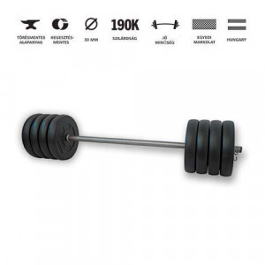 Univerzális, több készlet készíthető. A tárcsákat le-fel tudja helyezni a súlyzó rúdon.