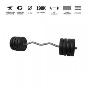 Univerzális, több készlet készíthető. A tárcsákat le-fel tudja helyezni a súlyzó rúdon.