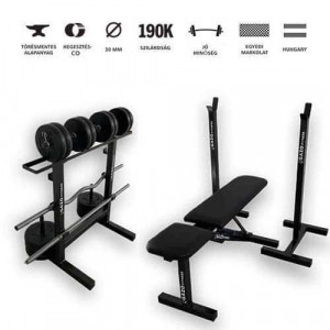 GazoFitness Hardcore csomag (súly 66 Kg) / mobil állvány, dönthető pad, tároló/