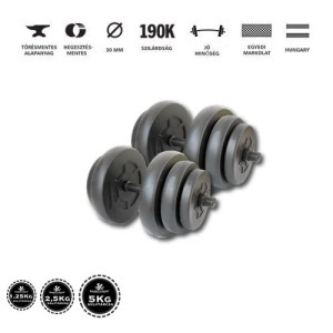 4 db 1,25 kg-os erősített falú GazoFitness súlytárcsa, 4 db 2,5 kg-os erősített falú GazoFitness súlytárcsa, 4 db 5 kg-os erősített falú GazoFitness súlytárcsa |