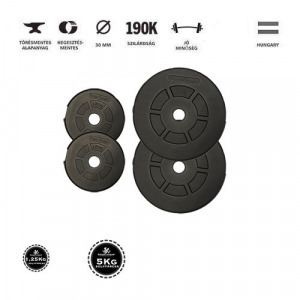 Univerzális, több készlet készíthető. A tárcsákat le-fel tudja helyezni a súlyzó rúdon.