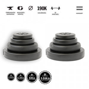 2 db 1,25 kg-os erősített falú GazoFitness súlytárcsa, 31 mm belső átmérővel. 2 db 2,5 kg-os erősített falú GazoFitness súlytárcsa, 31 mm belső átmérővel. 2 db 5 kg-os erősített falú GazoFitness súlytárcsa, 31 mm belső átmérővel. 2 db 10 kg-os erősített falú GazoFitness súlytárcsa, 31 mm belső átmérővel. |