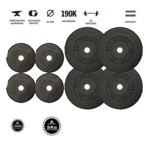 Univerzális, több készlet készíthető. A tárcsákat le-fel tudja helyezni a súlyzó rúdon.