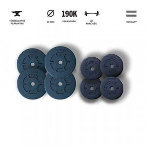 Univerzális, több készlet készíthető. A tárcsákat le-fel tudja helyezni a súlyzó rúdon.