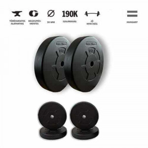 Univerzális, több készlet készíthető. A tárcsákat le-fel tudja helyezni a súlyzó rúdon.