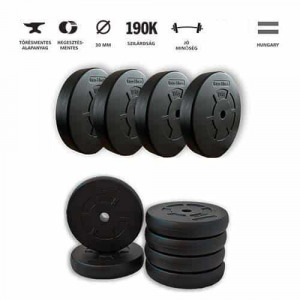 Univerzális, több készlet készíthető. A tárcsákat le-fel tudja helyezni a súlyzó rúdon.