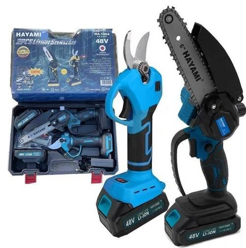 Mini akkumulátoros láncfűrész és ágvágó, 2 db akkumulátorral - 48V