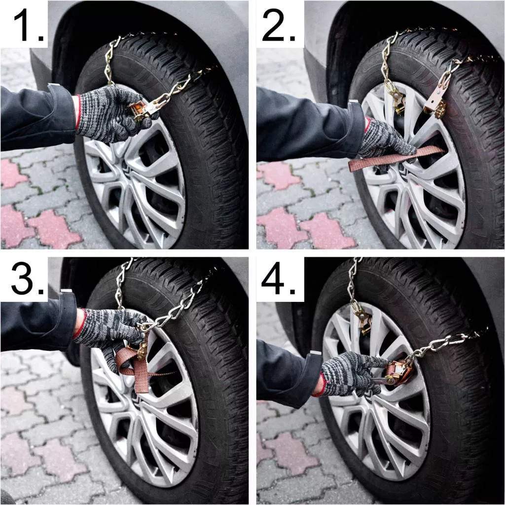 A strapabíró fémből készült hólánc gyorsan és egyszerűen felszerelhető, így rövid idő alatt felkészítheti járművét a nehezebb útviszonyokra.