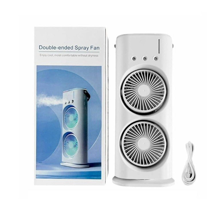 Hordozható dupla asztali ventilátor és párásító 3 sebességfokozattal - fehér