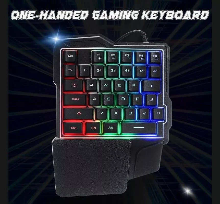 A K7 USB vezetékes, RGB háttérvilágítású gaming billentyűzet, egy kézzel használható. Ez a billentyűzet kifejezetten a játékosok számára készült, akik hatékonyan és kényelmesen játszanának. Azoknak készült akiknek fontos, hogy a billentyűzet erős, kompakt és kis méretű legyen, emellett a lehető legtöbb funkciót nyújtsa a hosszabb játékok során.
