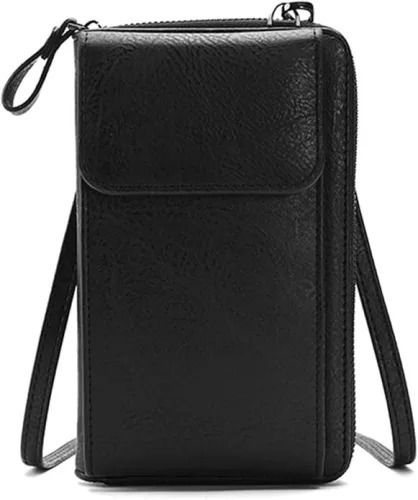 Kememo női vállra akasztható táska - fekete,PU bőr, kártyatartóval és pénztárcával