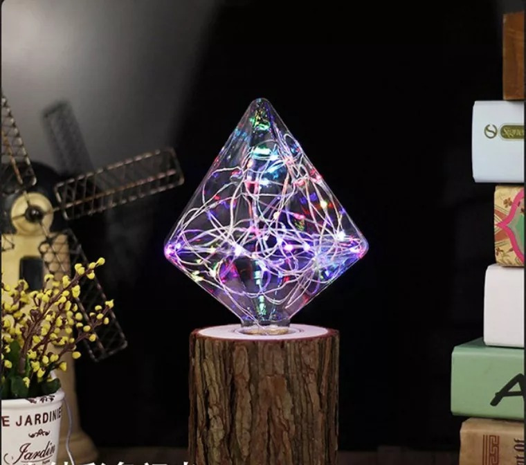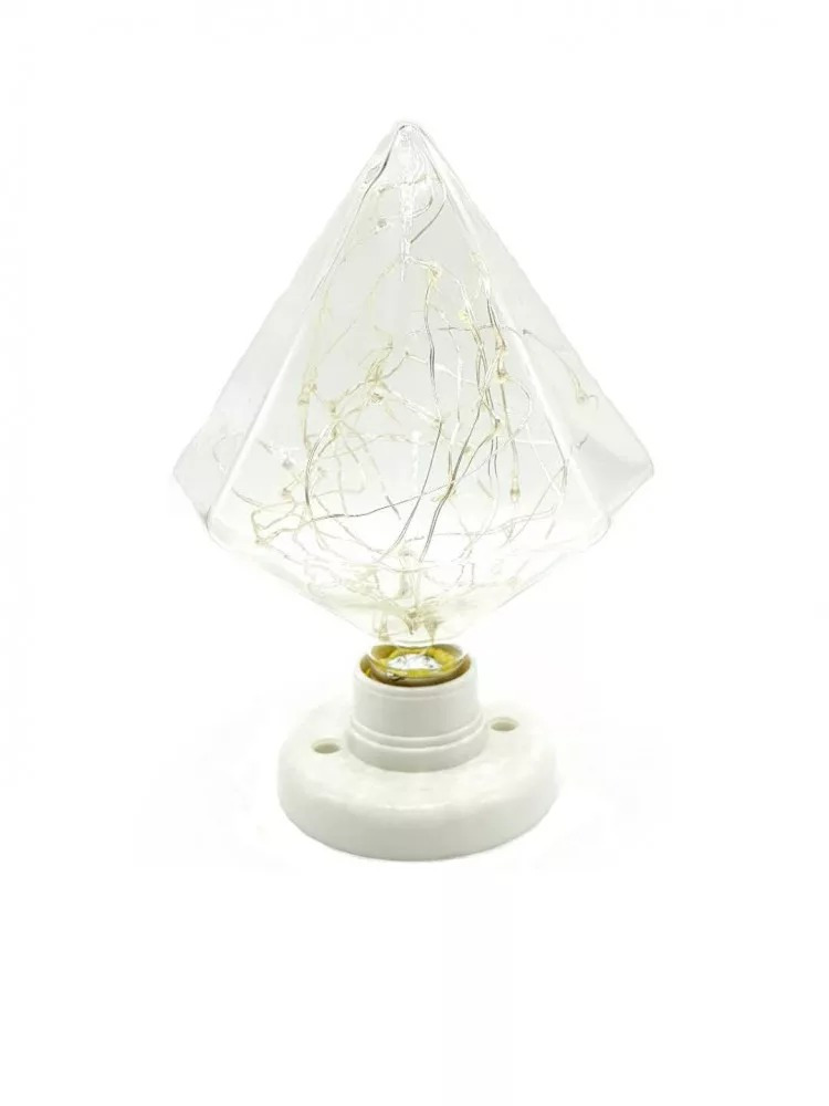 Kristály formájának köszönhetően tökéletesen illeszkedik az ünnepi dekorációhoz, és a színes fénye varázslatos hangulatot teremt a lakásban vagy az irodában. Kreatív formája és fényei ünnepi hangulatot árasztanak. A búrába integrált LED sor 1W teljesítménye igen alacsony. Így szinte semmit sem fogyaszt.