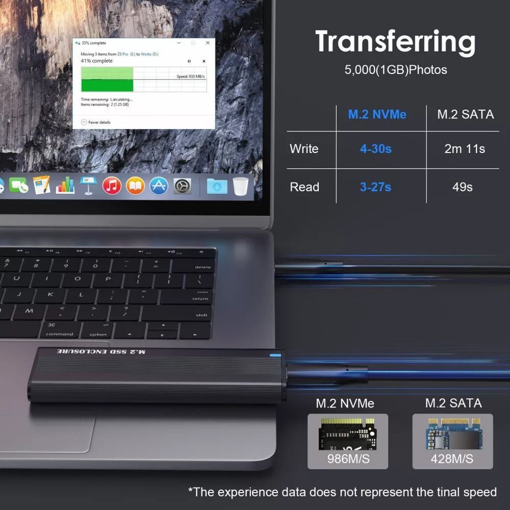 A külső NVMe M.2 külső SSD dokkoló támogatja az M.2 PCIe NVMe SSD-k használatát. Gyors, 10Gbps-os Type-C kimenettel van ellátva. Alumínium háza akár 24TB tárhelyet is képes kezelni.