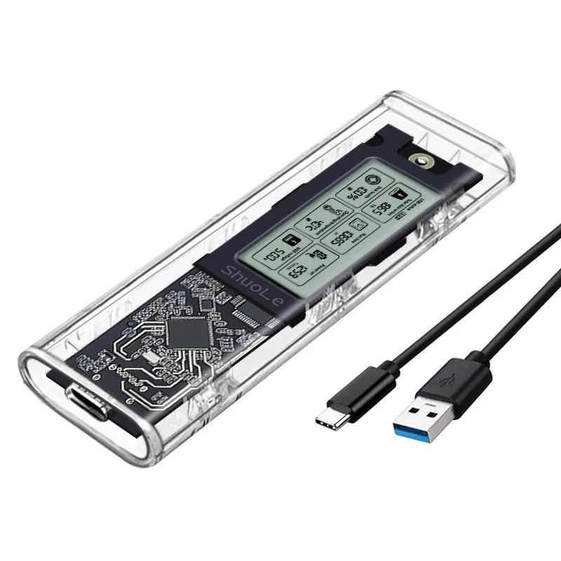 Az M.2 SSD Külső Merevlemez Ház erős ABS műanyagból készült, ami könnyű, de tartós. Átlátszó kialakítása modern megjelenést biztosít, miközben lehetővé teszi a belső komponensek láthatóságát. Ez a merevlemez ház kiváló választás azok számára, akik megbízható és nagy sebességű külső tároló megoldást keresnek, akár otthoni vagy irodai környezetben is egyaránt.