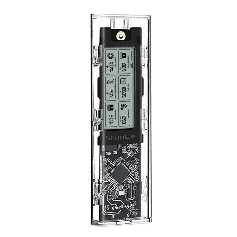 A beépített LCD kijelző valós időben mutatja az SSD állapotát, az USB csatlakozás típusát, a futási időtartamot, merevlemez bekapcsolásainak számát, a hőmérsékletet, valamint az USB porton mérhető feszültséget. Ezáltal növelve a kényelmet és biztonságot.