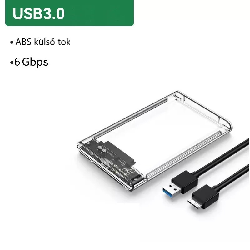 A 2,5" SATA merevlemez dokkoló egy SSD/HDD külső merevlemez ház. Biztonsági mentésekhez, adatok feldolgozásához és fájlátvitelhez készült. Mindez a dobozban található magas minőségű USB 3.0-ás kábellel lehetséges, ami 5Gbps adatátviteli sebességre képes.