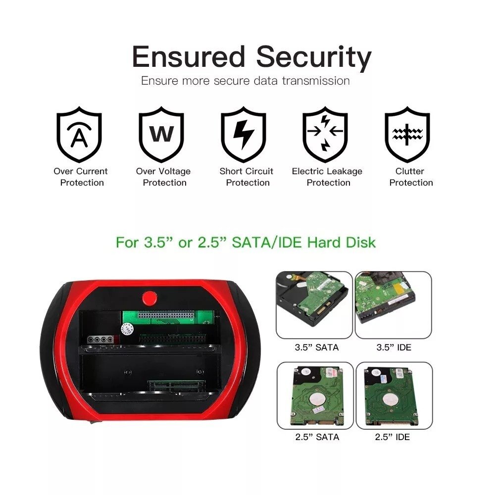 Az ALL IN 1 univerzális HDD merevlemez-dokkoló állomásnak 2db HDD slotja van, az első slot az egy 2,5"/3,5" HDD IDE slot, a második slot az egy 2,5"/3,5"-es SATA HDD slot, SATA kompatibilis adathordozóknak.