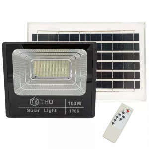 Nagy teljesítményű, akkus, falra szerelhető LED reflektor, munkalámpa, különálló napelemmel, 100W