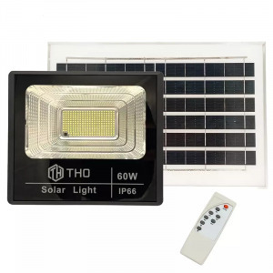 Nagy teljesítményű, akkus, falra szerelhető LED reflektor, munkalámpa, különálló napelemmel, 60W