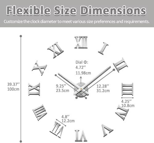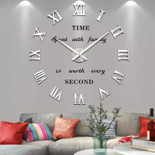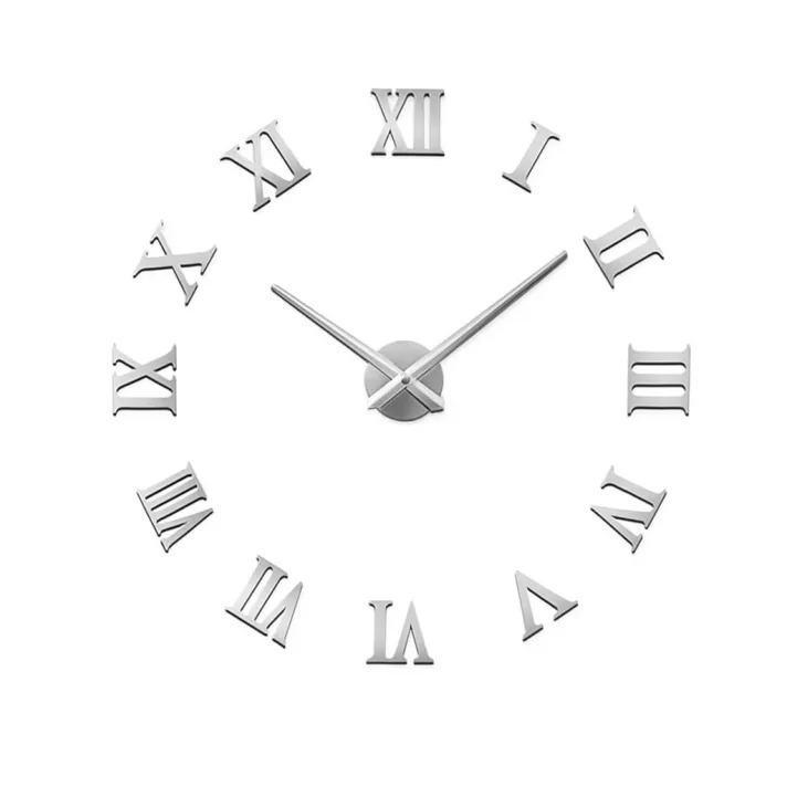 Nagyméretű DIY modern halk falióra -3D öntapadós római számos, ezüst