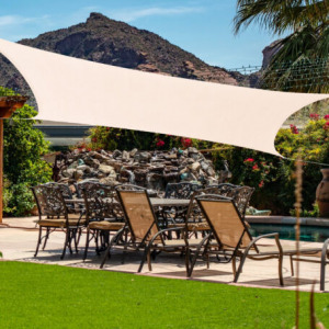 Napvitorla - árnyékoló teraszra, erkélyre és kertbe szögletes 4x4 m bézs színben - HDPE masszív anyag