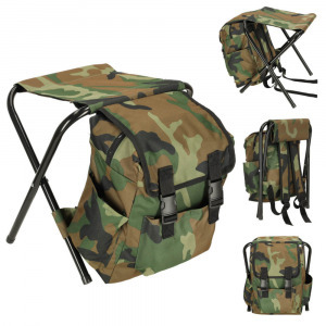 Összecsukható kemping horgász szék és hátizsák -camouflage