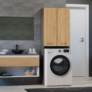 Az univerzális megjelenés megfelel mindenki elvárásainak, akik az egyszerűség és az elegancia kombinációját értékelik. A praktikus szekrény helyet biztosít a mosógépnek és egyéb dolgaidnak, valamint hangsúlyozza a modern, minimalista dizájnt.