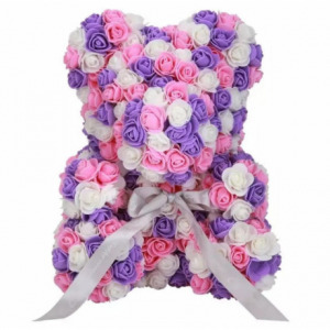 Rózsa maci díszdobozban 40 cm - mix (Rózsaszín-lila-fehér)