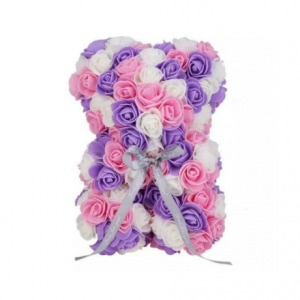 Rózsa maci maci díszdobozban 25 cm - lila-fehér-Rózsaszín mix