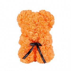 Rózsa maci, örök virág maci díszdobozban 25 cm - narancs