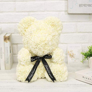 Rózsa maci díszdobozban 40 cm - krémfehér